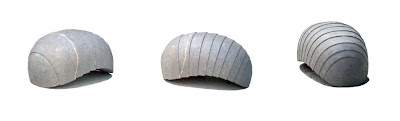 Três vistas de cada uma das peças que compõem a escultura Bichos. Foi feita na FBAUL no 5º ano da licenciatura. Lioz, 34x32x30cm, 25x49x30cm, 17x59x30cm.